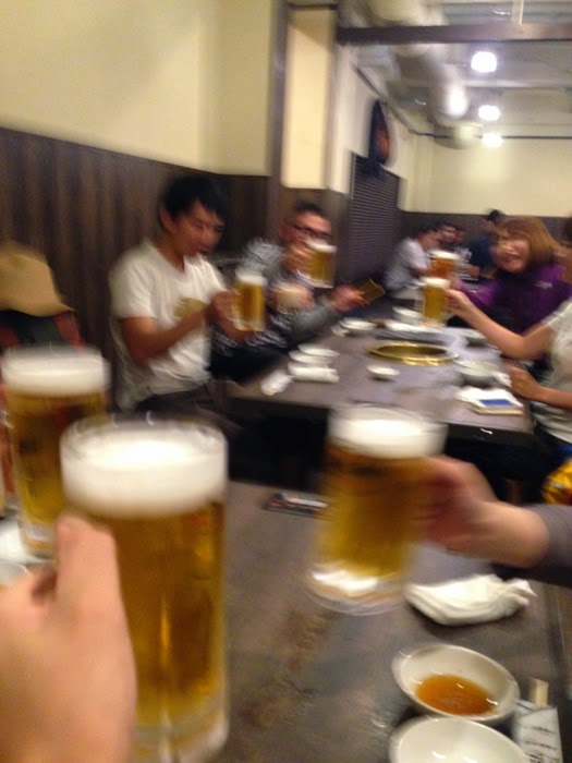 打ち上げは京都駅近くの焼肉屋で!ブレてる写真しか残っていないところに、ビールへの焦燥感があらわれている。